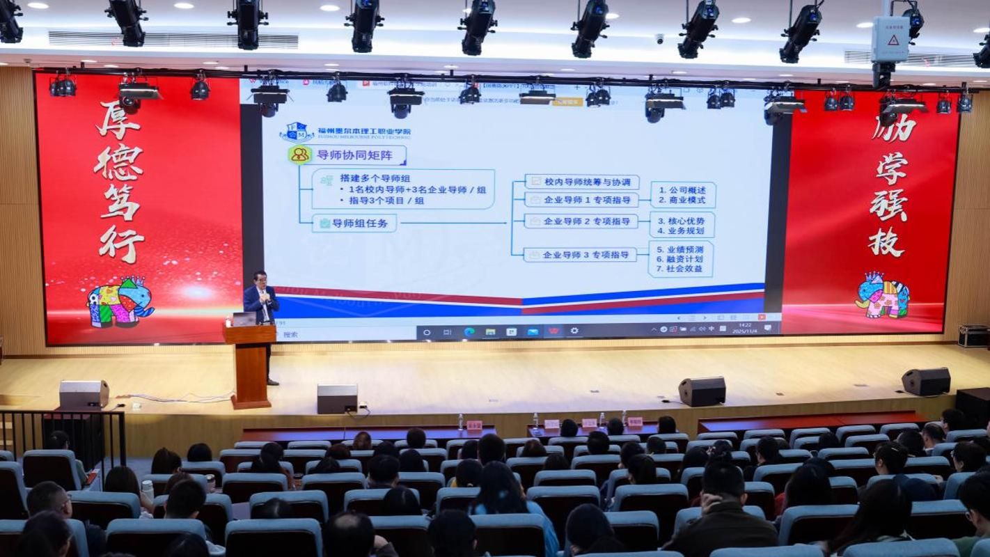 2025年11月4日,福州软件职业技术学院在图书馆8楼学术报告厅举行“从选题到突围——大学生创新大赛高质量项目培育”的专题讲座。福州墨尔本理工职业学院副校长陈江城、财务处处长、三创中心主任吴永谊、福州软件职业技术学院常务副校长林土水、校长助理李榕玲、各学院院长、副院长、企业副院长、总支部正副书记、教师代表、学生代表等出席讲座。本次讲座特邀财务管理、教育创新与双创育人领域的资深专家吴永谊教授主讲,旨在提升师生在创新大赛中的项目培育能力,助力我校双创赛事。
